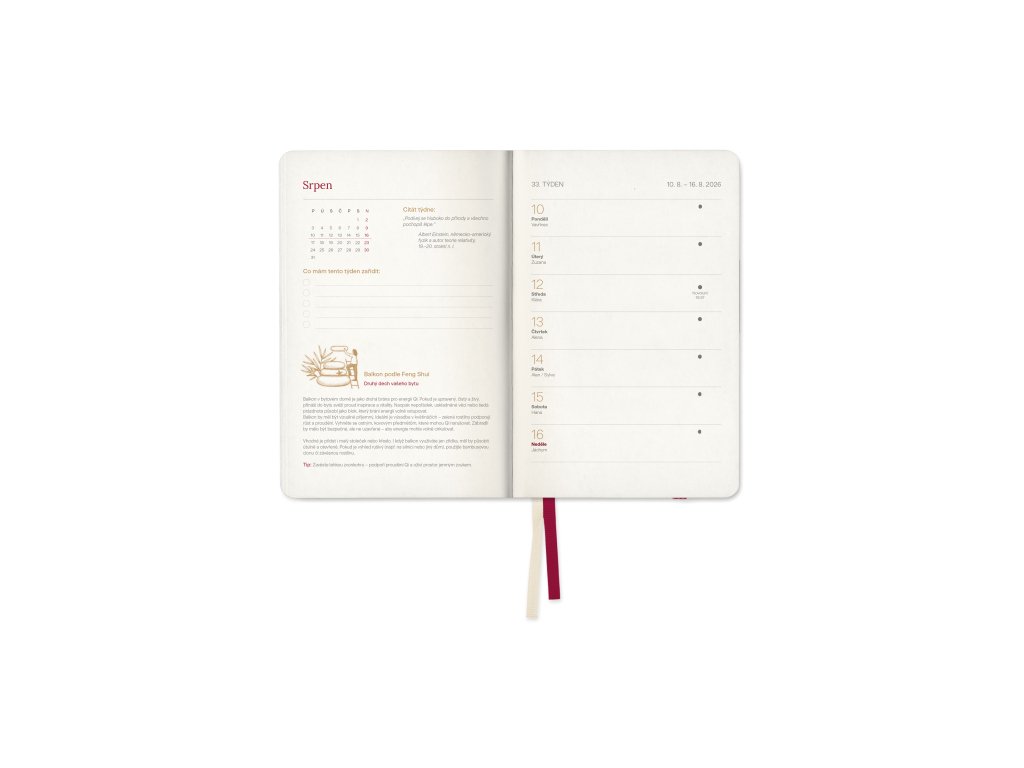 Rok 2026 bude váš rok. Vládne mu Kůň a je to období, kdy můžete realizovat všechno, co jste si v předchozím roce Hada vysnili. Pokud je to zdravější životní styl, náš nový diář bude vaším ideálním průvodcem. Pomůže vám nejen organizovat každodenní plány a povinnosti, ale především zpomalit, zaměřit se na sebe a začít žít spokojenější život. A co je nejdůležitější, postará se o to, abyste budování zdravějších návyků jen tak nevzdali.